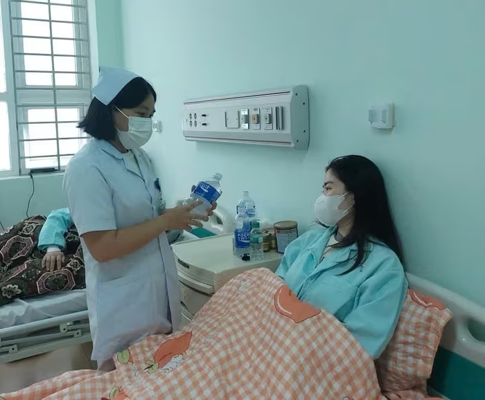 Bệnh nhân nghi bị ngộ độc thực phẩm đang điều trị tại Bệnh viện đa khoa Bà Rịa. Ảnh: tienphong.vn