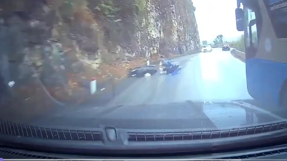 Một vụ tai nạn giao thông được cho là đã xảy ra trên đoạn đường đèo QL6 Mai Châu ,Hòa Bình khi một tài xế ô tô thực hiện pha vượt xe trong điều kiện được cho là không đảm bảo an toàn. Sự việc khiến hai người đi xe máy phía trước hoảng loạn, phanh gấp dẫn tới mất lái và ngã xuống mặt đường.